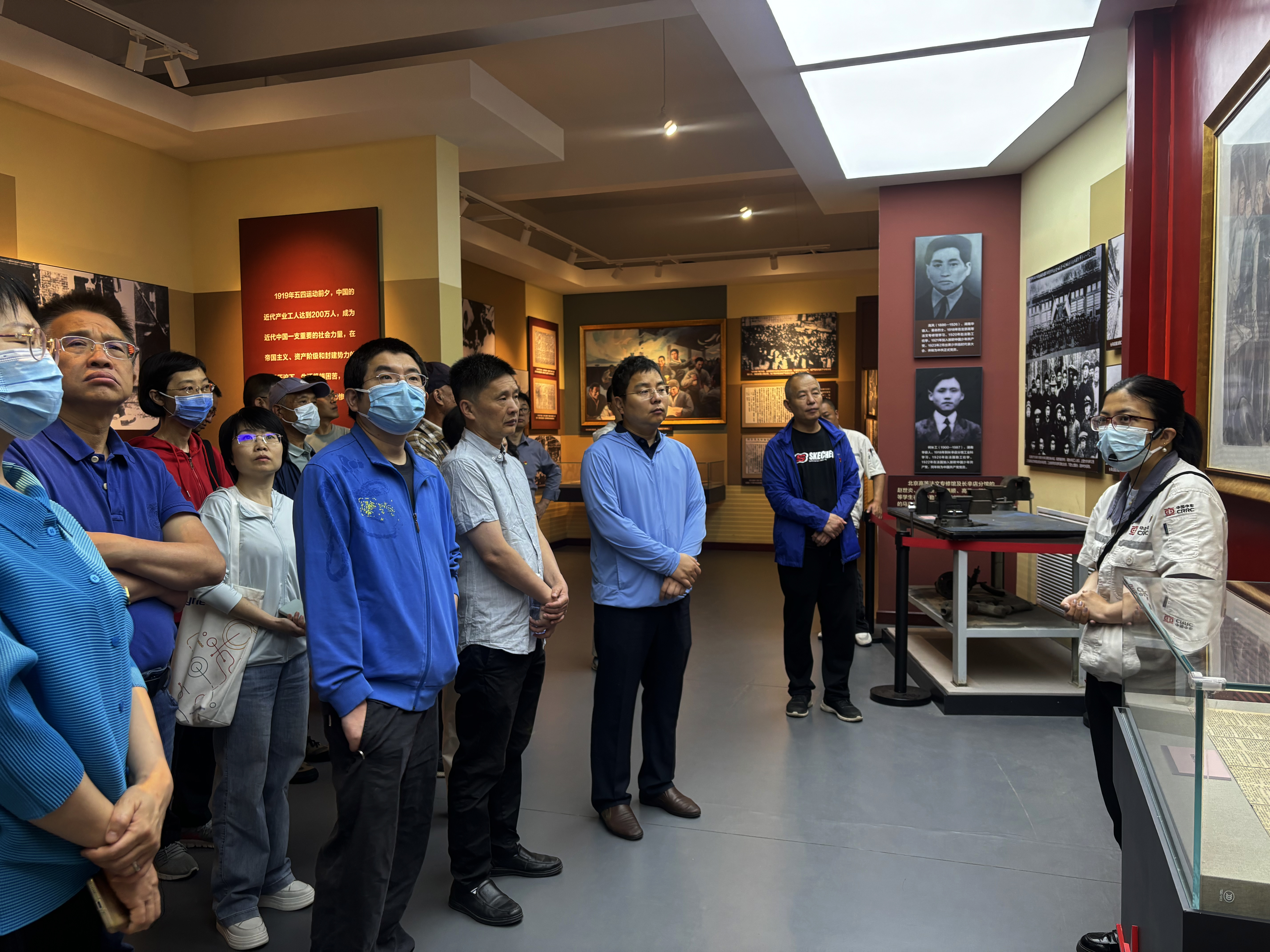 在讲解员的带领下,我们走进“北方的红星——长辛店与中国工人运动”专题展览馆。大家通过一件件实物、一张张照片重温长辛店铁路工人参加五四运动、创办长辛店劳动补习学校、创建长辛店工会、建立工人中的党组织、开展长辛店铁路工人罢工以及参加京汉铁路工人大罢工等革命事迹,详细了解中国共产党领导北方工人运动的光辉历史,感受先烈们“天下兴亡、匹夫有责”的担当精神,百年前设计独特的工会会员徽章、简洁有力的二七歌谣、“二七惨案”发生时老工人身穿的衣帽、传递工人运动信号的铜制汽笛等重要文物给全体党员留下了深刻的印象。