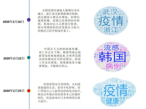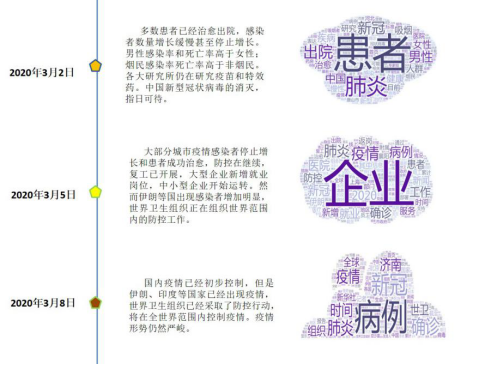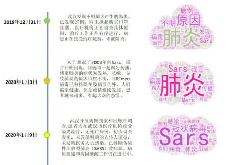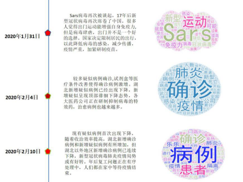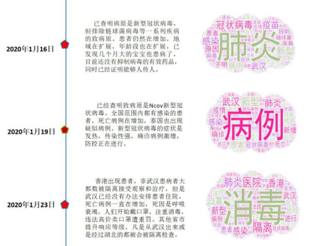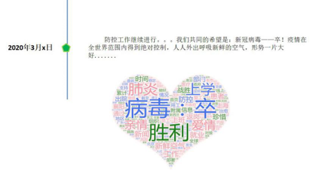 作为一名辅导员,我一直在思考应该做些什么。结合学院专业特点,我带领计算机专业周乐凯、邵博文、孙翱等几个学生,用Python编程Scrapy爬虫对2019年12月以来关于新冠肺炎的相关新闻报道进行了追踪,利用自然语言处理(NLP)的jieba分词工具,统计相关热词,最后用Excel生成图表、wordclouds生成词云进行可视化,梳理了疫情发展的脉络,以帮助大家更加清晰地认识疫情,科学理性地防控。