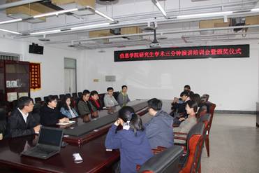为拓展研究生学术能力,繁荣校园学术氛围。4月9日上午,信息学院举办了研究生“学术三分钟”演讲培训暨颁奖仪式,学校研究生工作部副部长杨嵩松应邀出席。