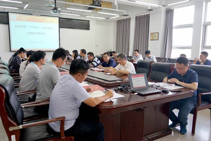9月17日,信息学院在瀚学楼1014召开“不忘初心、牢记使命”主题教育推进会,学院党委书记刘文楷主持会议,全体党支部书记参加了会议。