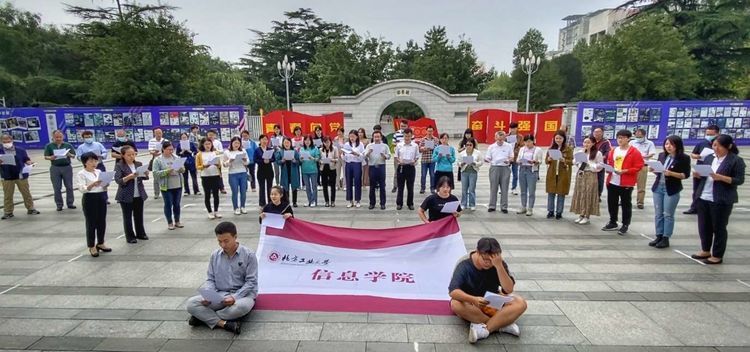 信息学院工会合唱团组织的“迎国庆 唱红歌”活动于9月30日中午12:30在小广场进行。全院近50人参加了活动。大家热情洋溢地演唱了《我和我的祖国》、《大中国》两首歌曲。