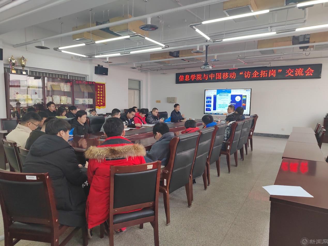 2月23日下午,信息学院在瀚学楼1014邀请中国移动通信公司开展访企拓岗活动。院长马礼、副书记陈卫、副院长鲁远耀、学院就业辅导员以及40余名2023届毕业班学生参加了活动。中国移动信息技术中心大数据BG梧桐鸿鹄社区负责人麦峰瑞、吴以坤,以及公司相关部门工作人员一行参加了本次活动。本次活动是学院“百企拓冰”促就业系列活动。