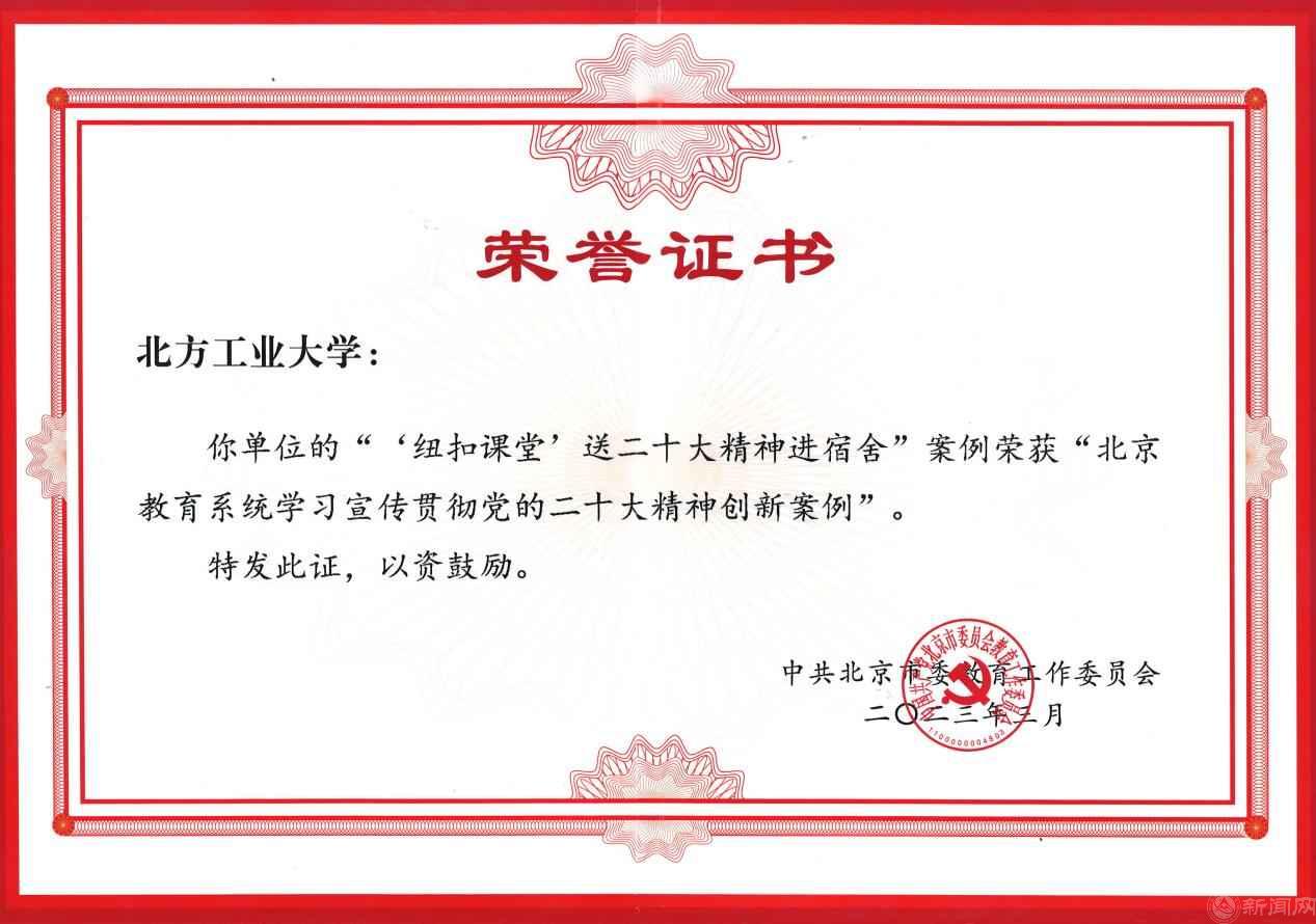3月14日,北京市委教育工委公布学习宣传贯彻党的二十大精神创新案例评选结果,pg娱乐电子官网报送的“‘纽扣课堂’送二十大精神进宿舍”成功入选。