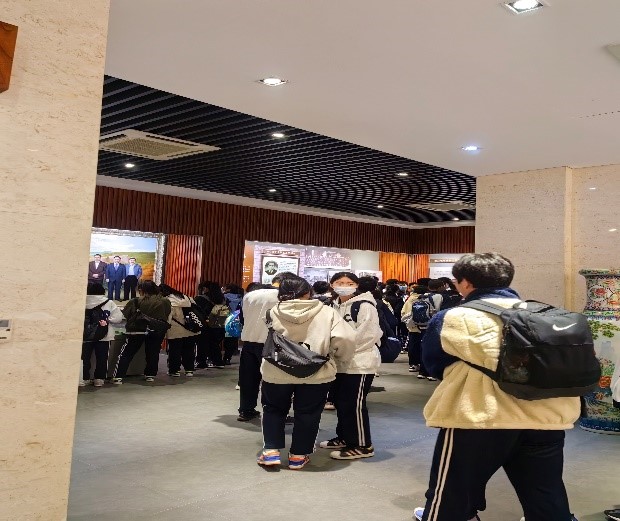 4月21日上午延庆三中高二年级全体师生150余人在校长程来继带领下来pg娱乐电子官网参观交流。