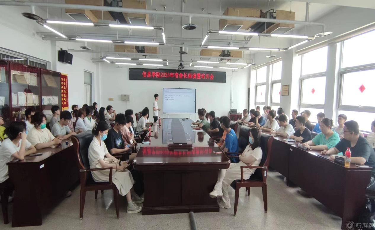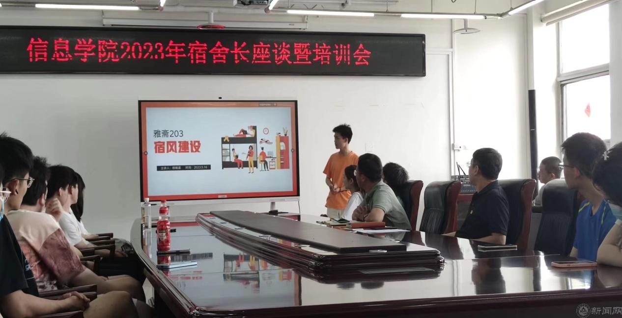大学生宿舍思政教育已成为高校思想政治教育的重要组成部分,为了进一步推进信息学院“寓见一线”宿舍思政育人模式,加强和改进学院学生思想政治教育工作,5月16日中午,信息学院召开2023年宿舍长座谈暨培训会,学院党委副书记陈卫、团委书记杨和家、各年级辅导员和各年级宿舍长参会。