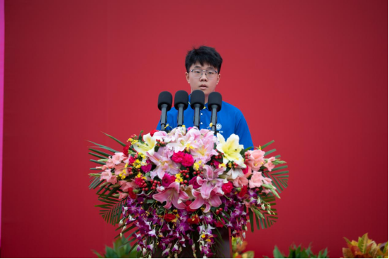 在校生代表钱俞霖向学弟学妹们总结了自己的大学学习和生活经验,第一,多参考老师的教导和批评能够帮助同学们早日找到正确的学习方向。第二,在大学期间要广交朋友。离家之后,除了老师,身边的朋友和同学就是我们最亲近的人,总能在我们遇到困难的时候施以援手。最后,钱俞霖同学祝愿新生们能够拥有美好的大学回忆。