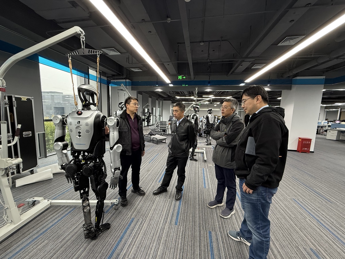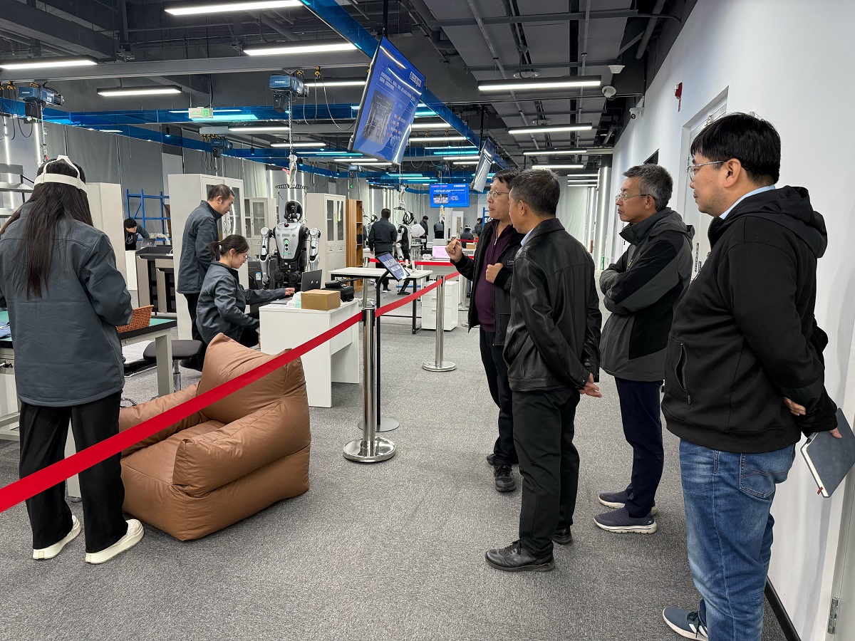 10月22日,pg娱乐电子游戏官网入口马礼书记带队赴人形机器人数据训练中心调研交流,副院长段建勇、人工智能系主任赵卓峰研究员及王菁副研究员参加了此次活动。