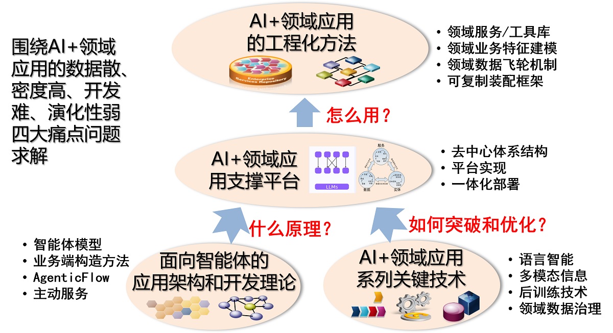以推进垂域大模型应用系统化研发为目标,从大模型领域应用的工程化方法角度,推进“AI+政务”、“AI+情报”、“AI+法律”等方向的垂类大模型及应用研发,打造复杂场景下的多样化智能体,并实现具备强泛化能力与行业适应性的大模型智能体和典型示范应用。