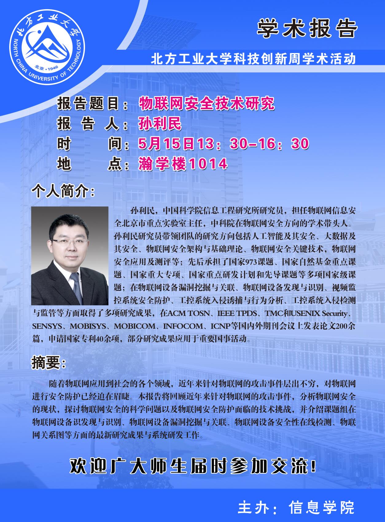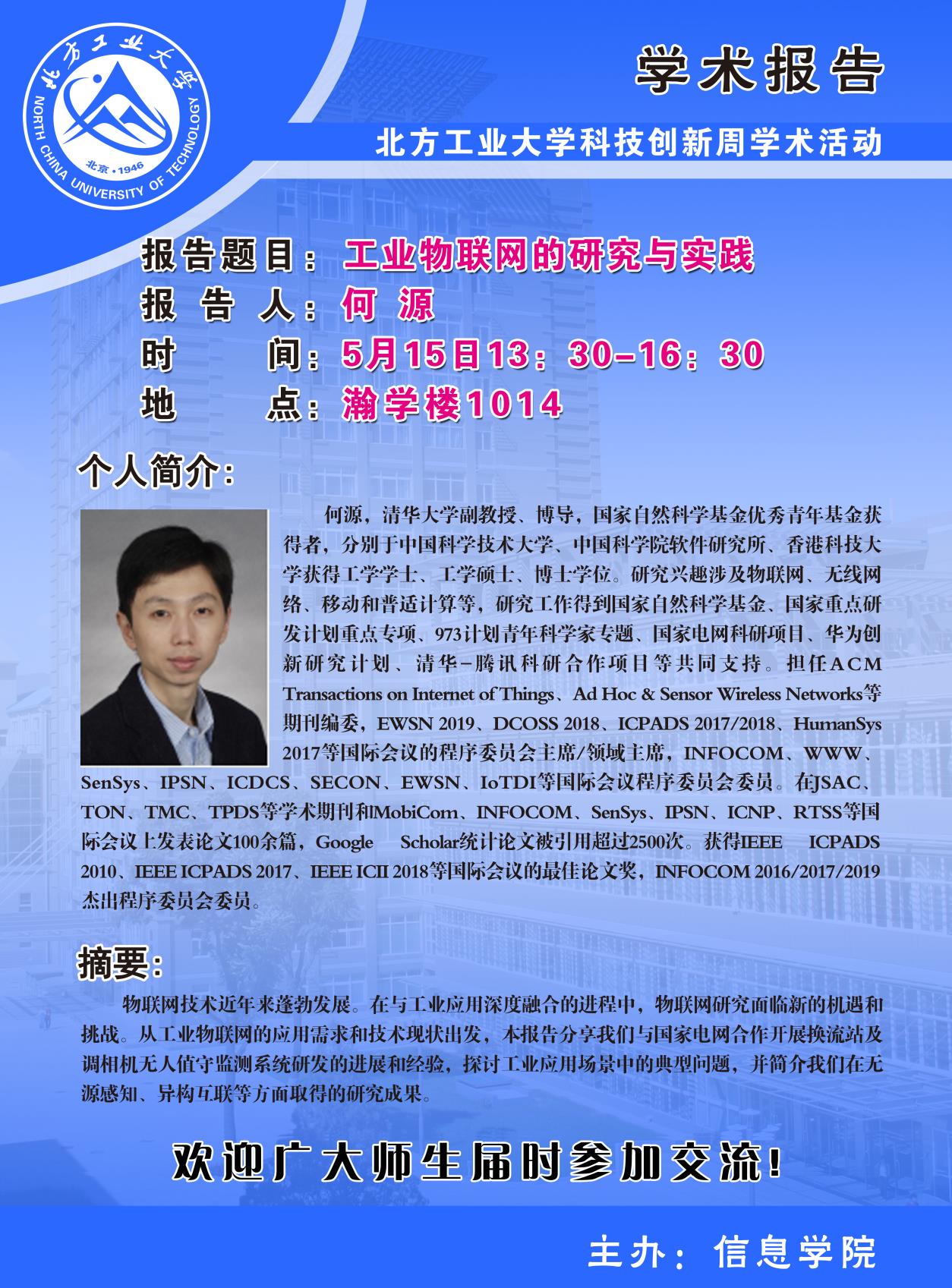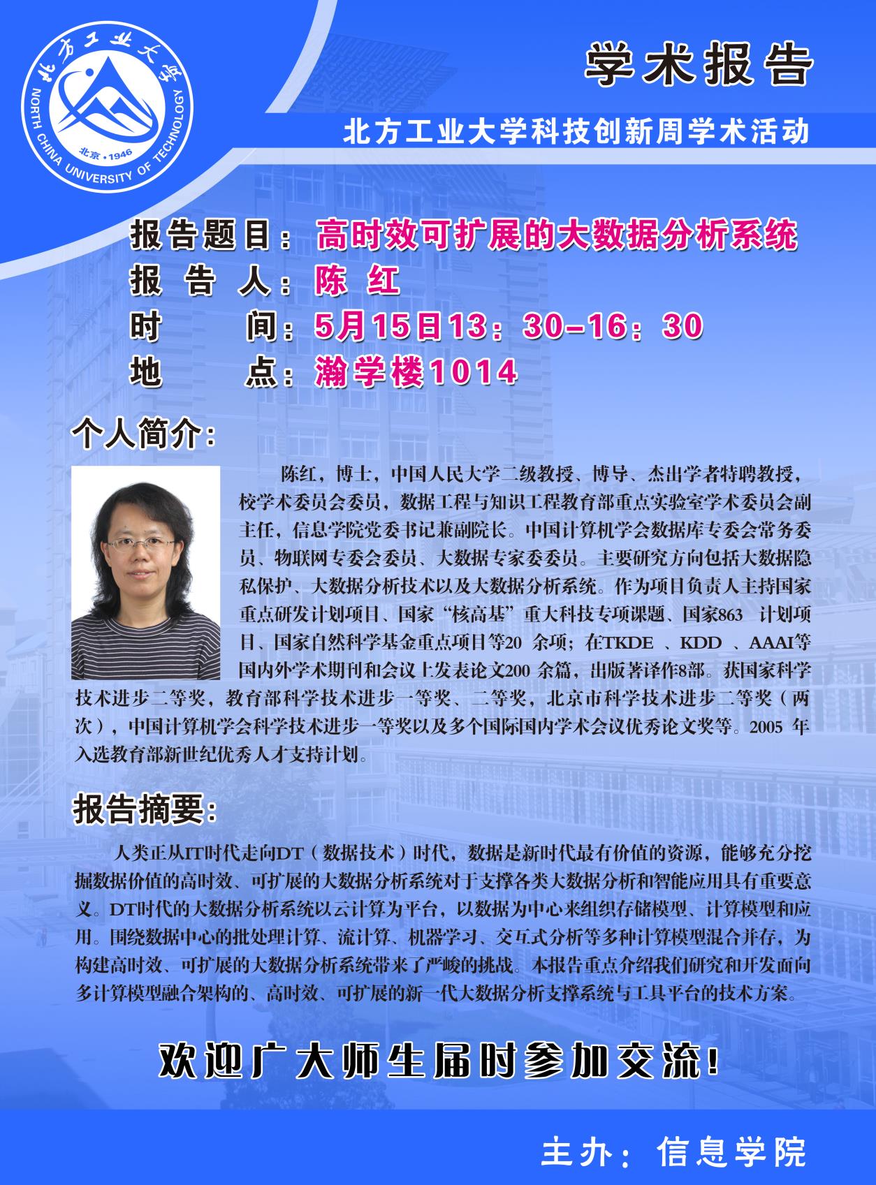pg娱乐电子游戏官网入口科技创新周暨CCF走进高校系列学术讲座安排如下: